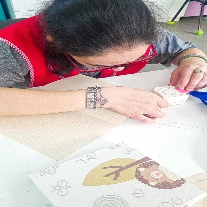 La encuadernación es una actividad que permite a los participantes del taller experimentar una profesión, desarrollando habilidades artesanales, brindando un espacio donde puedan aprender técnicas que se pueden transformar en una fuente de ingresos y una vía hacia la autonomía económica. Aprendiendo a utilizar diversas herramientas como cúter, punzón, hilos agujas, reglas, cunas y otras, a no tenerles miedo, pero si respeto, ya que son herramientas que pueden ocasionar daño si no se les da real importancia.